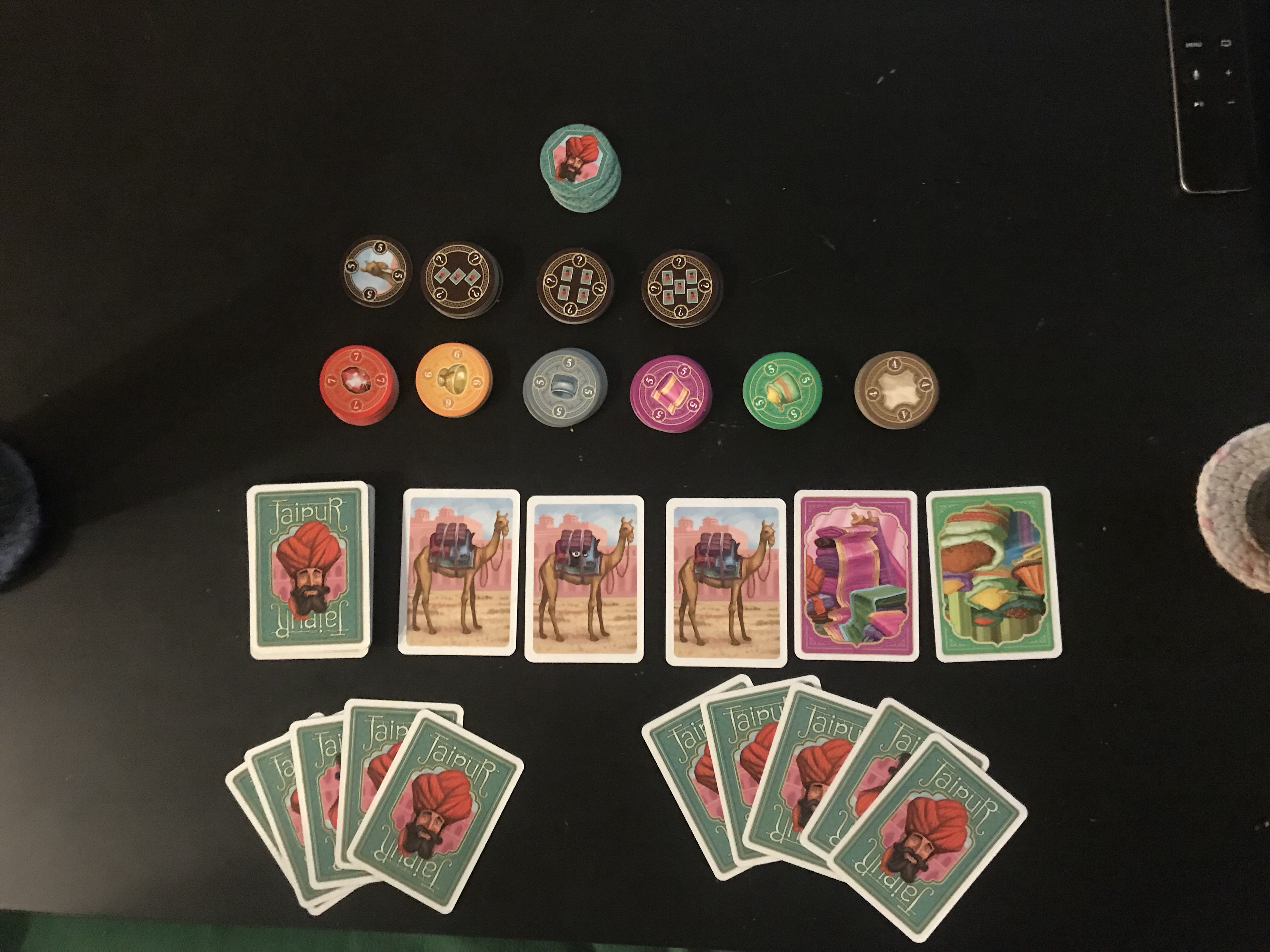Jaipur is one of many tabletop games that take the great mechanics of a resource and market management game, then slap a stereotypical Indian or Arab bazaar trade market theme on it. Jaipur, Istanbul, Taj Mahal…they all have this type of theme and all are heavy on allowing players to set markets.