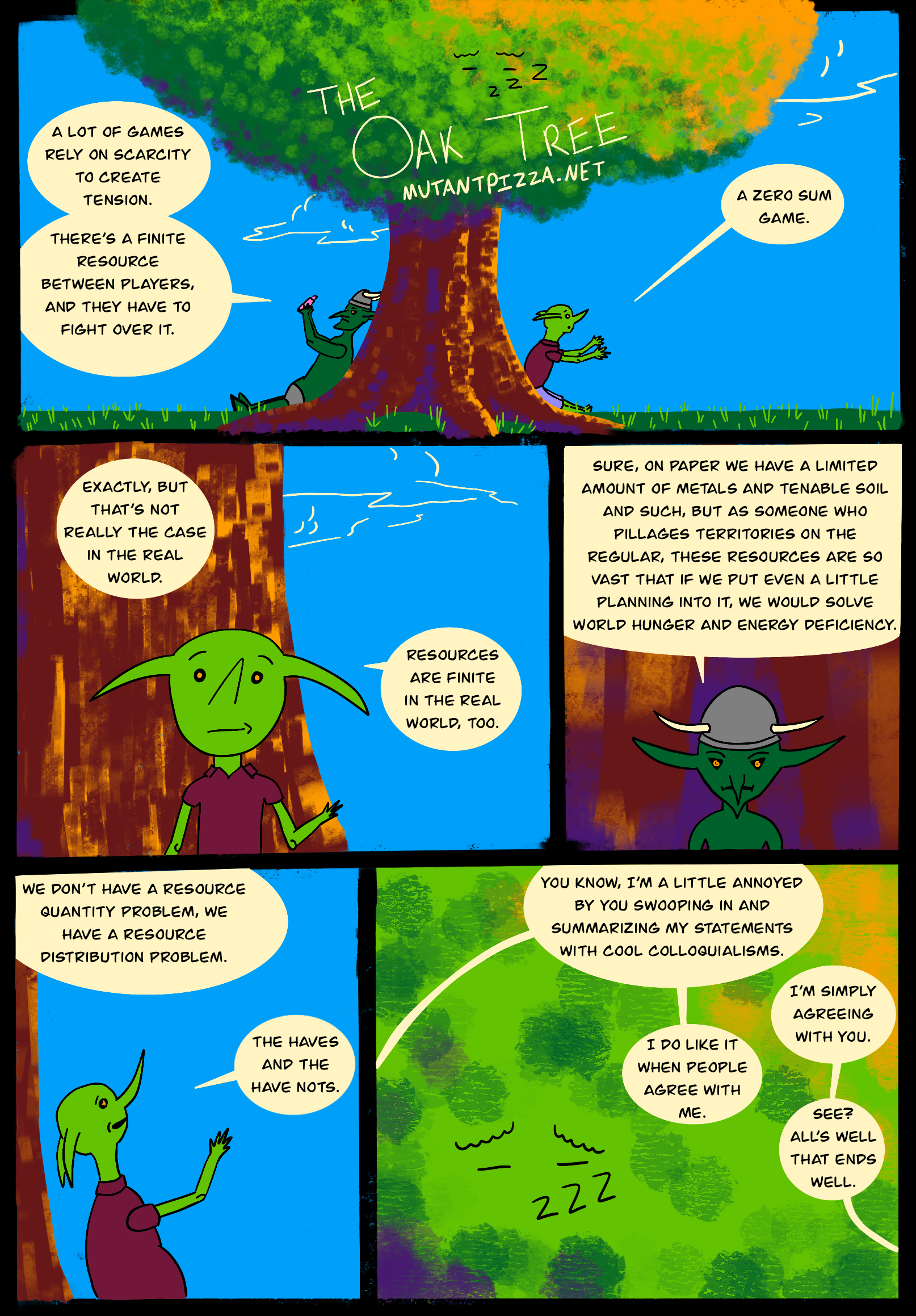 A lot of games rely on scarcity to create tension. There’s a finite resource between players, and they have to fight over it.