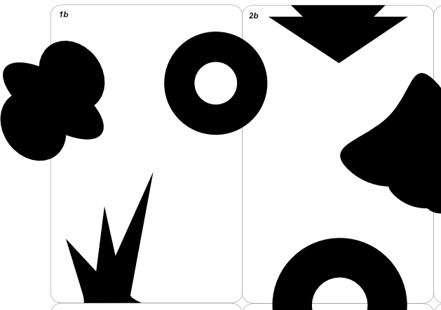 - Shapes towards the edge (the prior iteration’s shapes had space and some where in the middle of the card back)